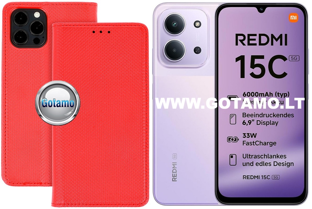 Re-Grid magnetinis dėklas Xiaomi Redmi 15C, raudonos spalvos